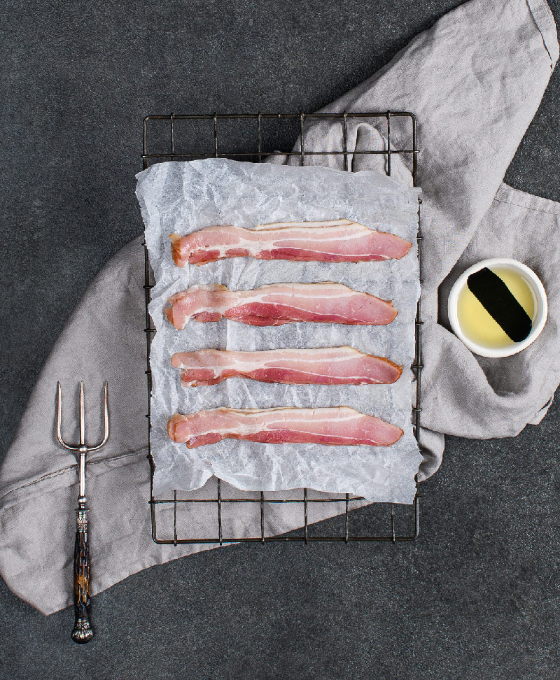 Pirongia Streaky Bacon. Traditional Manuka smoked with a well-balanced salty, caramelised, honey flavour. Dry but succulent and won’t steam away in the pan. Cut from the pork belly, Streaky Bacon is rindless making it so versatile to pair and wrap with many other meat cuts. Try it wrapped around banana slices, fried and served with a drizzle of maple syrup for a special breakfast treat.